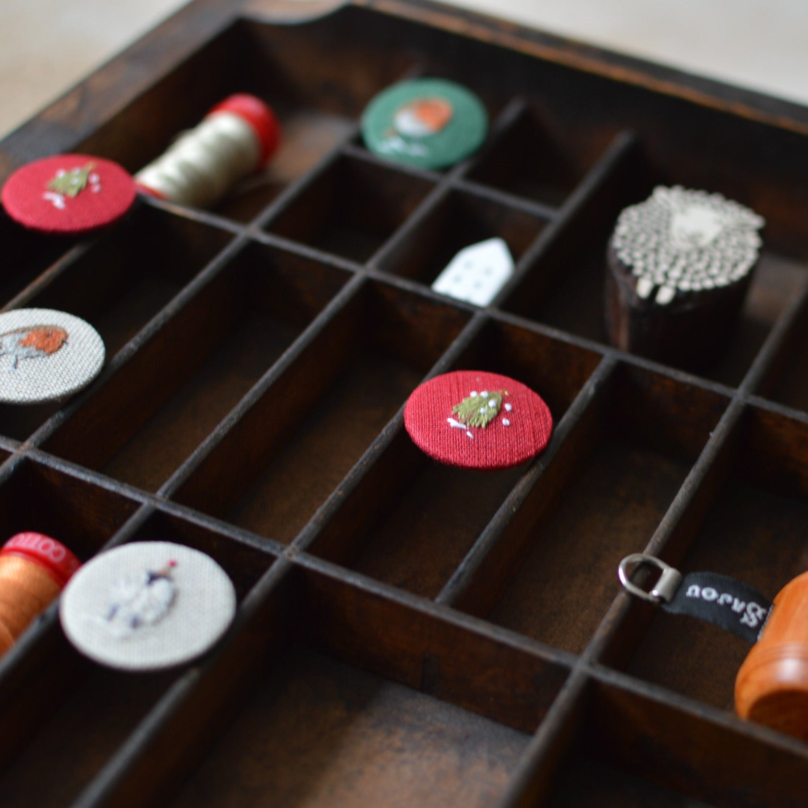 This handmade embroidered badge features a wintery Christmas Tree on natural linen, detailed with tiny green stitches and a delicate snowflakes. Thoughtfully crafted in a small 3 cm size, it adds a warm holiday touch to any outfit.