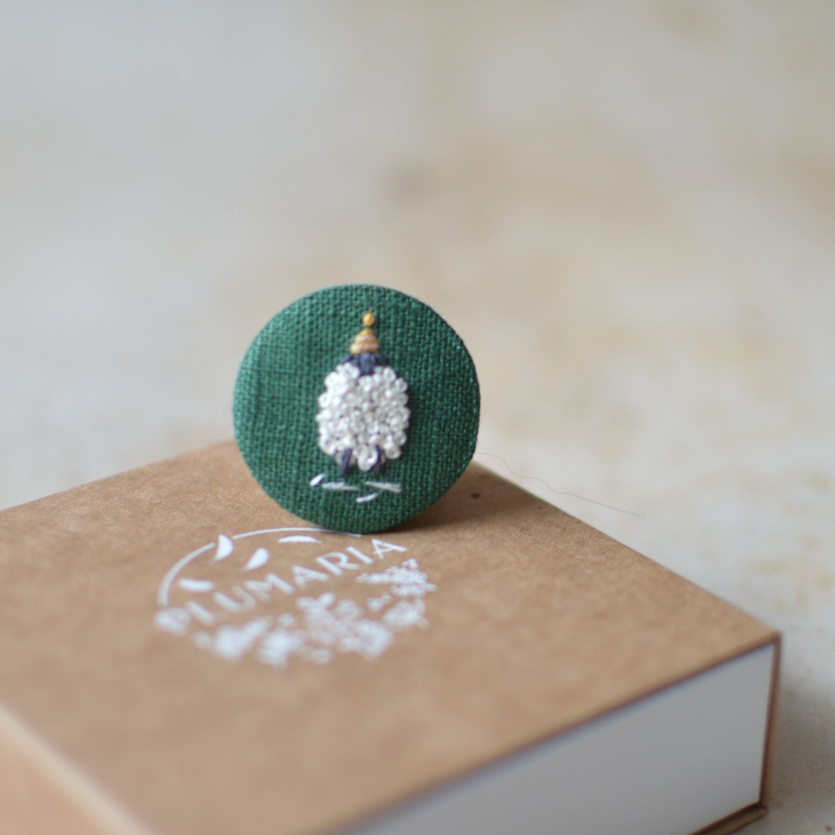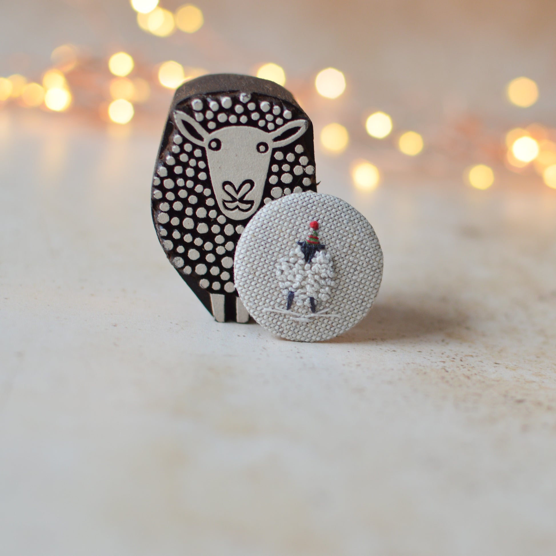 Add a touch of cozy charm to your outfit with this handmade embroidered sheep badge. Each piece features a fluffy little sheep wearing a cheerful winter hat or scarf carefully stitched on natural linen. Lovingly crafted with fine embroidery, this tiny accessory brings warmth and whimsy to your everyday style.