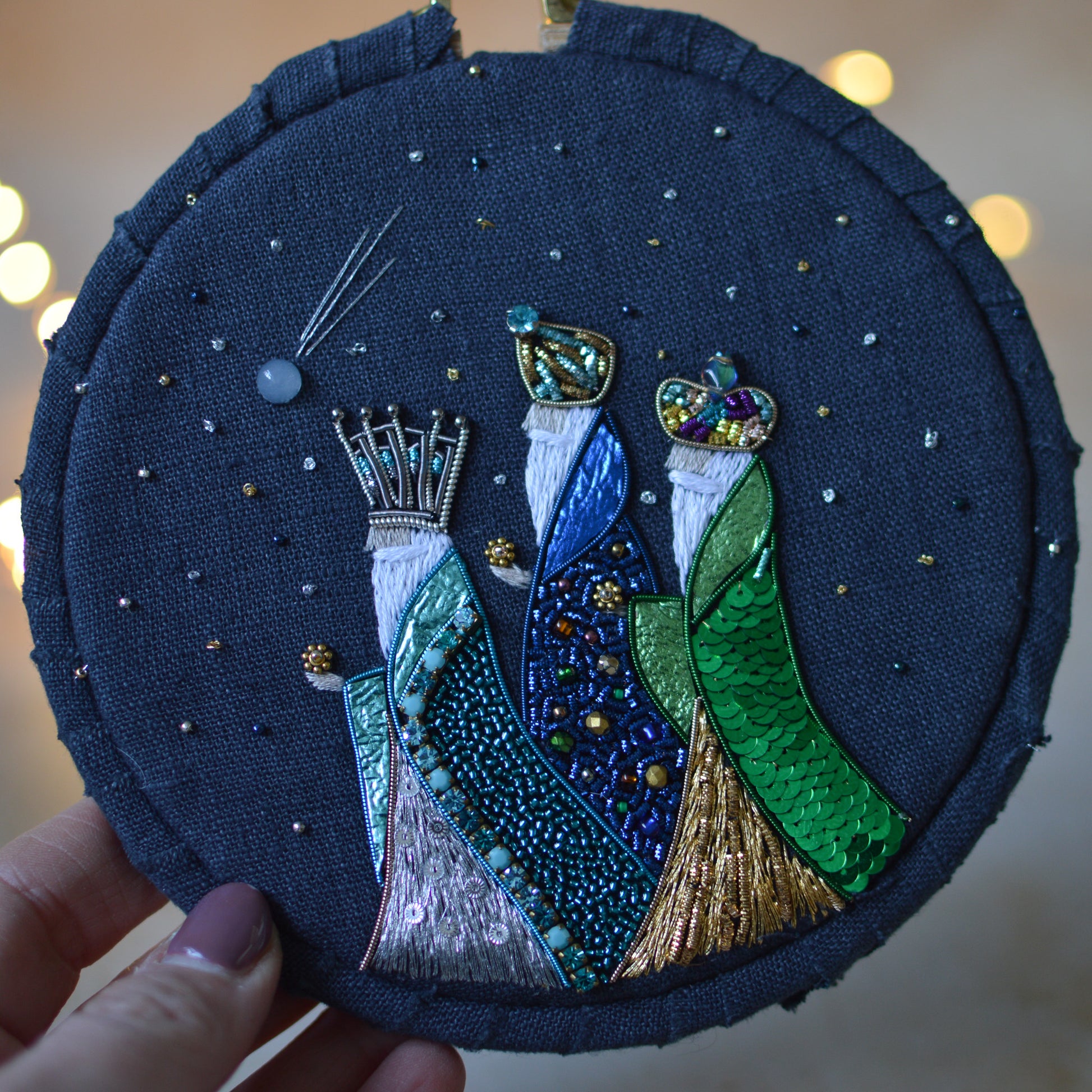 The picture was embroidered with beads, threads, specialty wire and sequins, taking an inspiration from a cross stitch pattern :)